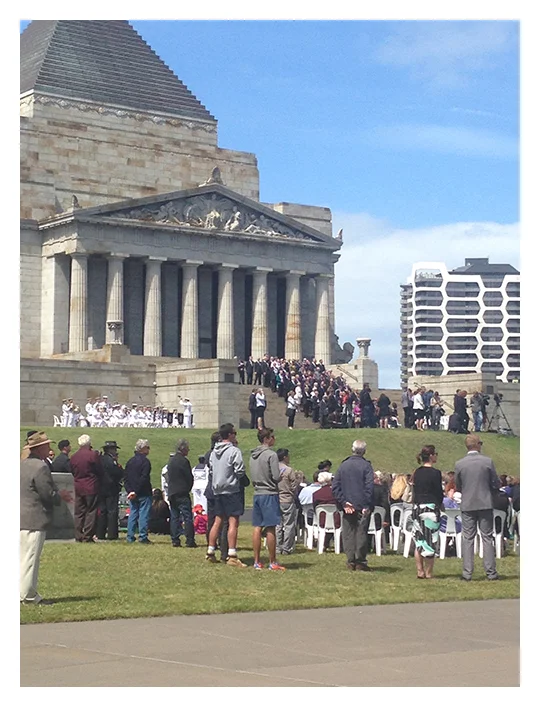 After the ceremony we made our way further South to the Shrine of Remembrance and caught the end of the official service. It was very moving.